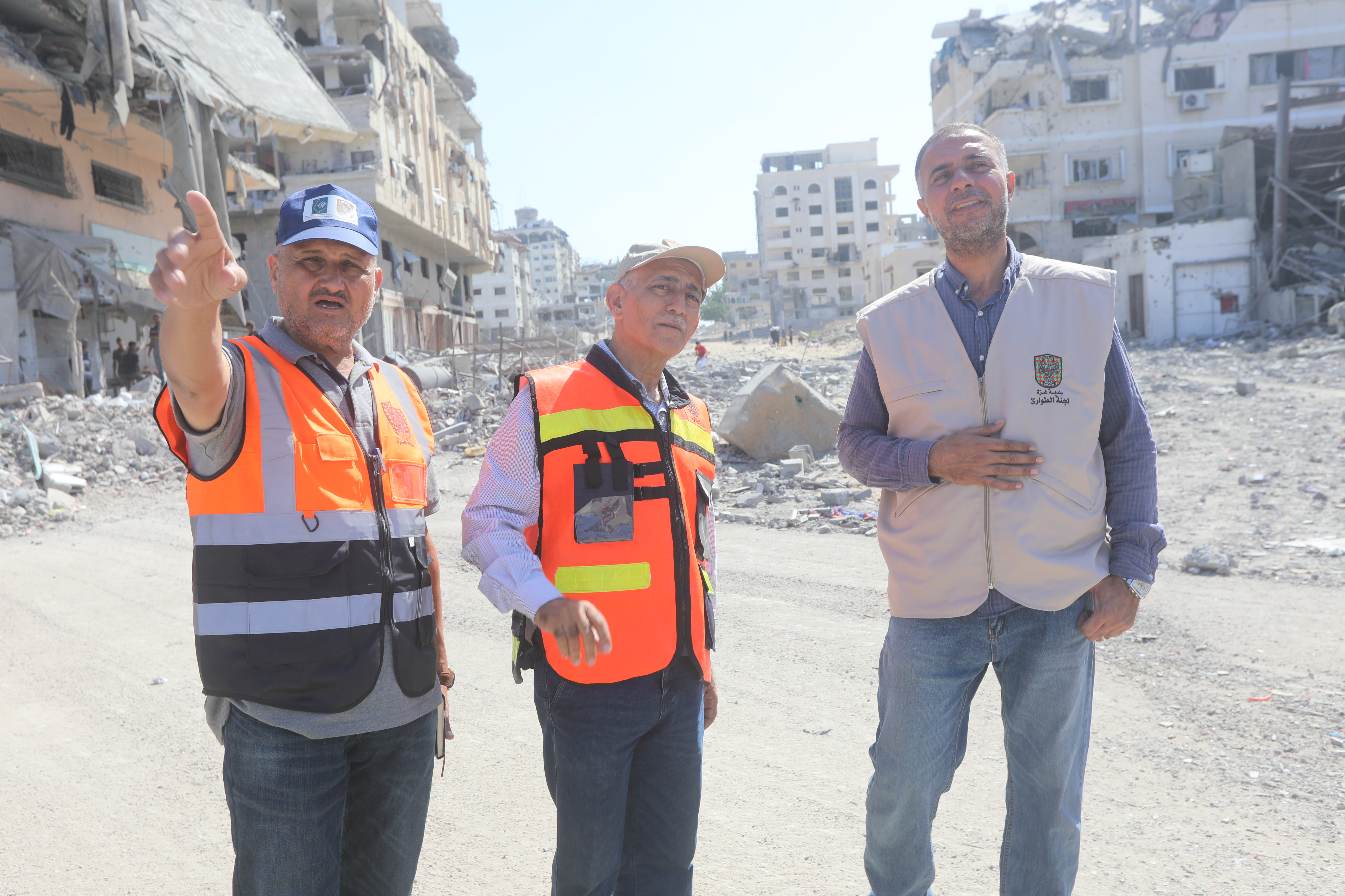 تفقد رئيس بلدية غزة، د. يحيى السراج، المناطق التي تعرضت لدمار واسع في شمال غرب المدينة بعد انسحاب الاحتلال الإسرائيلي منها، وذلك برفقة نائب رئيس البلدية تامر الريس، وعضو المجلس البلدي مصطفى قزعاط.